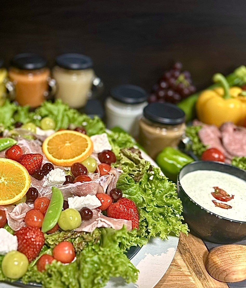 見た目にも楽しく、素材の良さを引き立てる構成にこだわり、旬の野菜やフルーツを使用した彩り豊かなサラダを中心に、和の要素を取り入れたピンチョス、スープ、ジュースを展開します。スープは野菜の旨みを生かし、捨ててしまうことの多い野菜の皮も残さず使い切り、フードロスの削減にも取り組んでいます。ジュースも地球環境に配慮しながら作られており、これからの季節には旬の白桃やシャインマスカットなどを使用した商品の提供を予定しています。