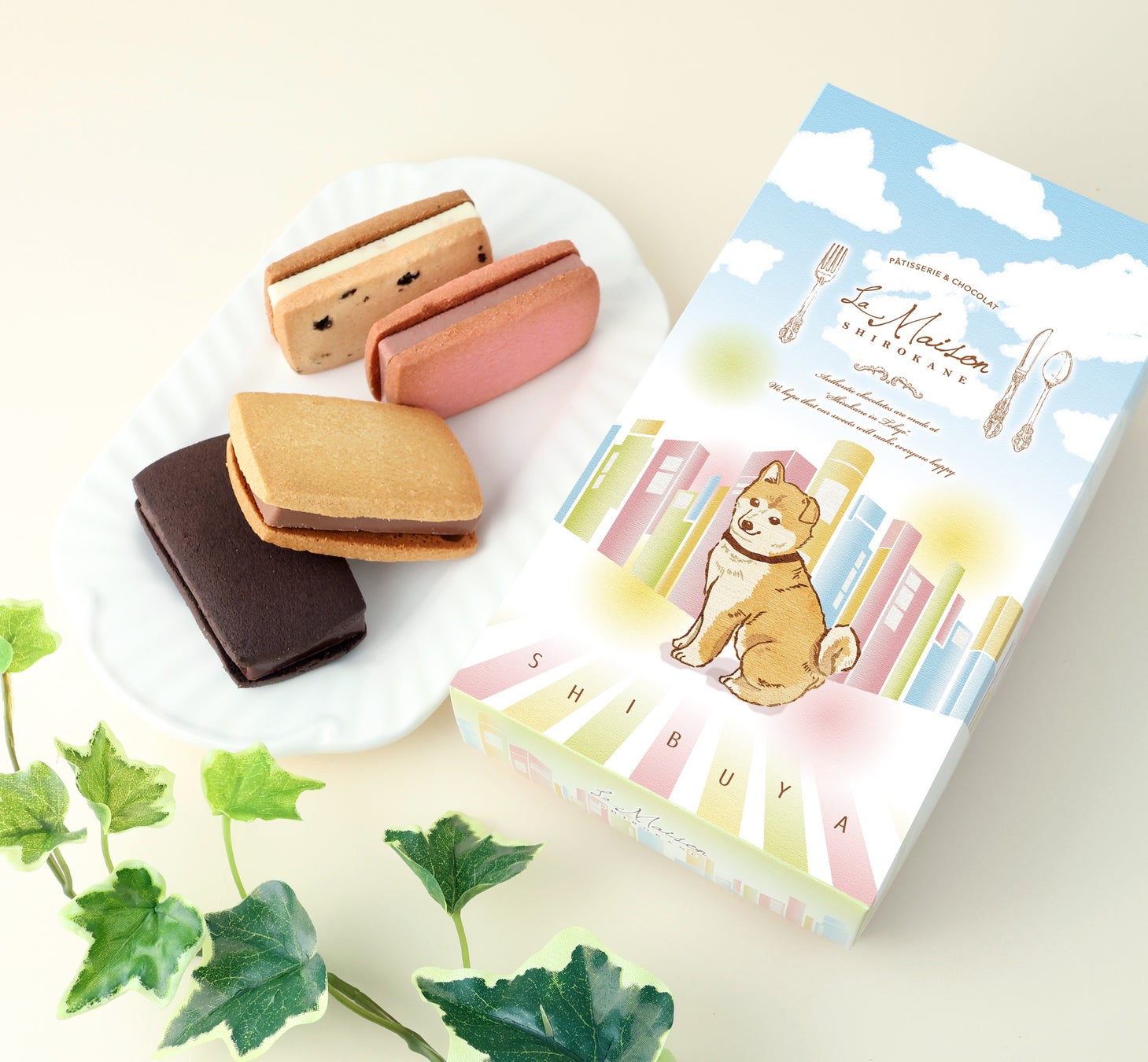 濃厚なショコラをサクッと食感のクッキーで挟んだ人気のショコラサンド4種(ビター、キャラメル、レーズンバター、あまおう苺)を、渋谷ヒカリエ ShinQs限定のパッケージに詰め合わせました。渋谷の手みやげにおすすめです。