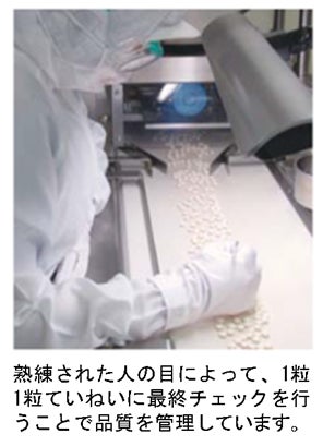 工場では、原材料の受け入れから製造、出荷に至るまで、全工程でさまざまな検査を重ね、徹底した製造管理と品質管理体制により安全性・高品質を追求しています。商品の生産及び品質管理に関してはGMPの取り組みに基づき実施されています。