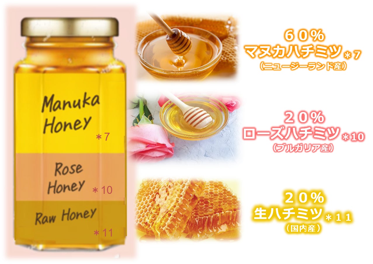 世界各地から厳選した3種のハチミツ*7を独⾃の⽐率※1で配合。
