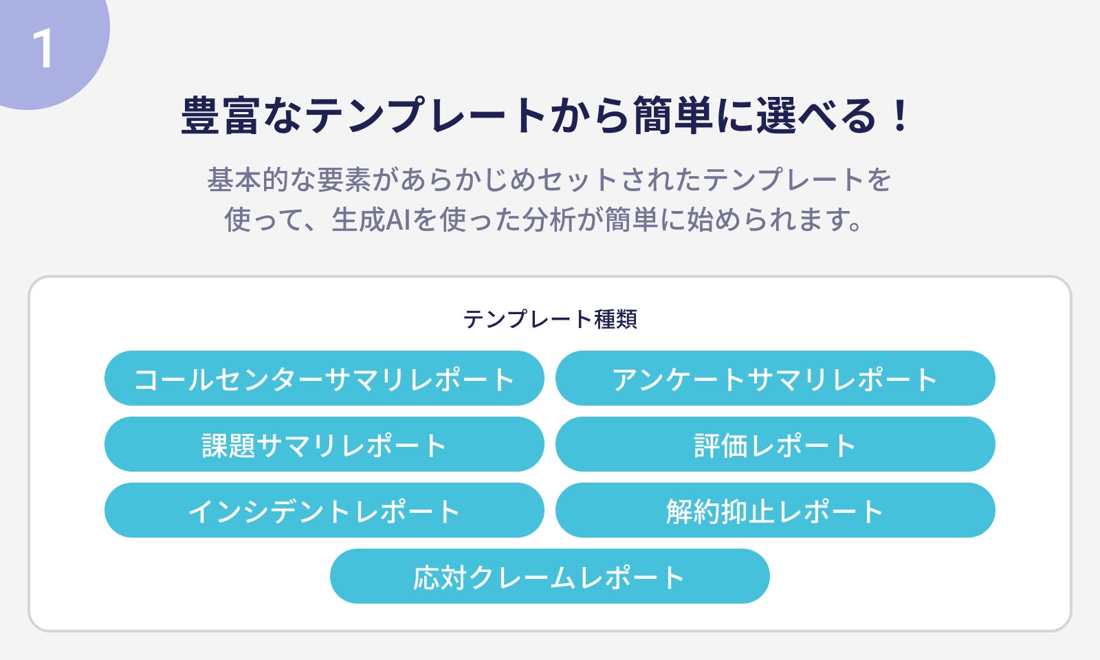 2023年には生成AIの自動レポート出力機能も搭載!分析作業不要で、顧客の声から改善策を自動でレポート出力!よくある質問の改善、サービスに対する不満要素の改善、進めてみませんか?