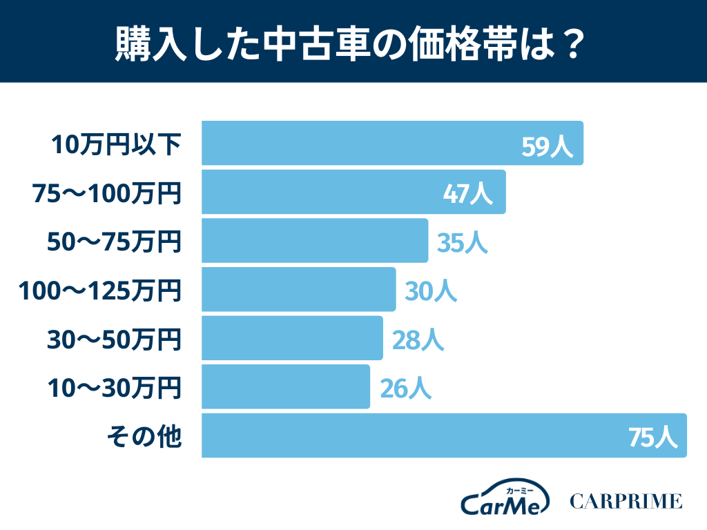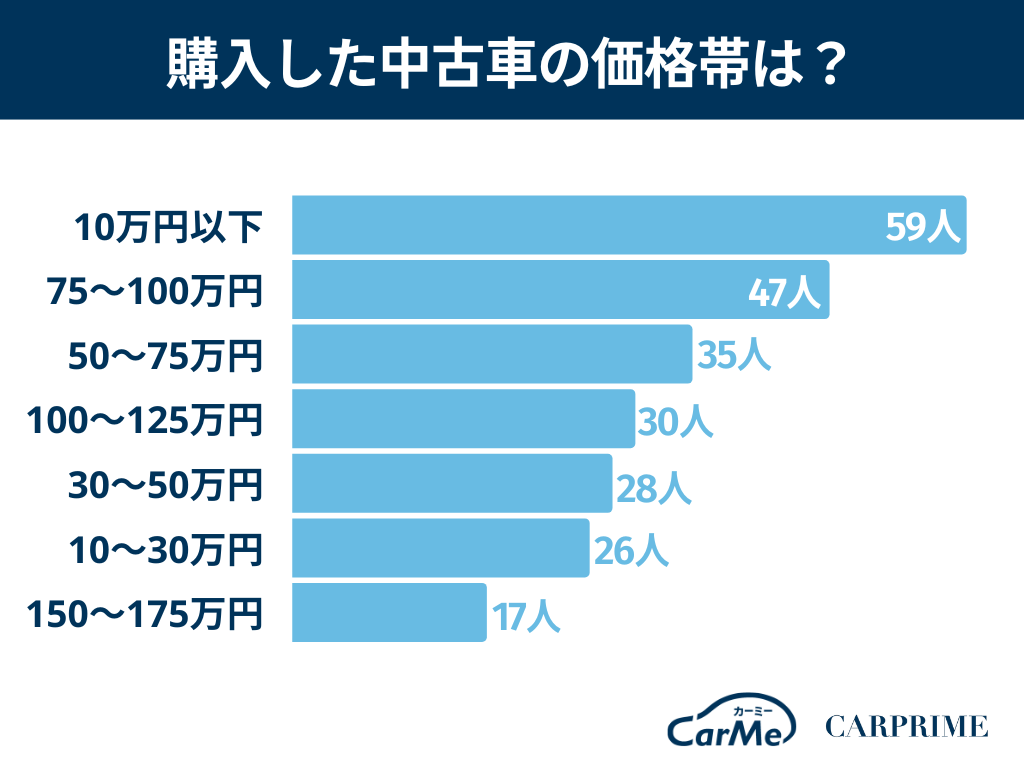 続いて多かったのが75〜100万円で47名でした。中古車を購入する人の中には、それなりの質がある中古車を求める層と、とにかく安い中古車を求める層があるようです。