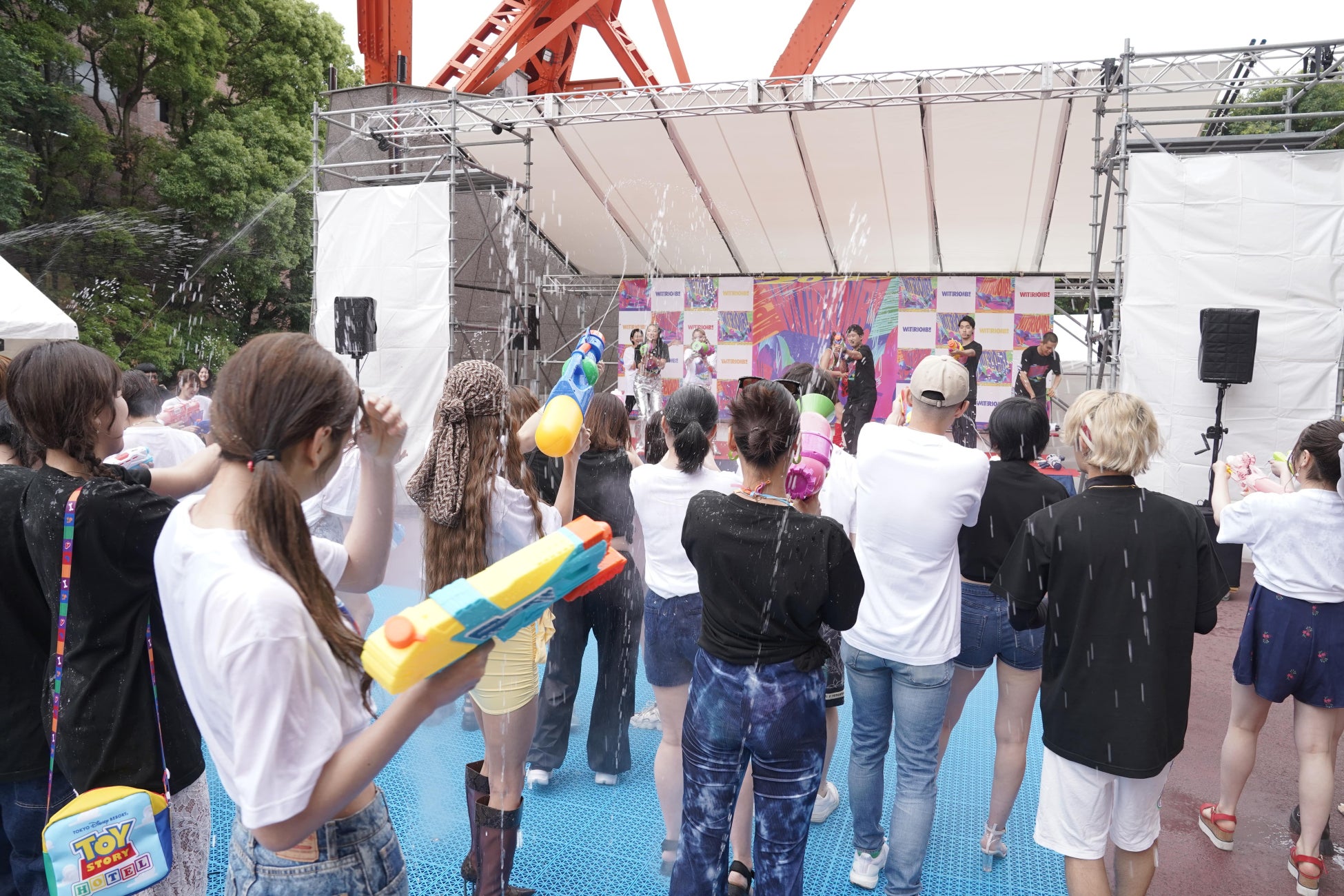 記者発表の第2部ではインフルエンサー約40名が参加した「WATERBOMB体験会」も開催され、本番さながらのチームバトルWATER FIGHTINGが繰り広げられた。フワちゃん、四千頭身、そしてアンエンユリが、白熱のWATER FIGHTINGをいち早く体験し、フワちゃんは「最高!みんなずぶ濡れになって一緒に帰ろうぜ!」と、大興奮のバトルとなった。