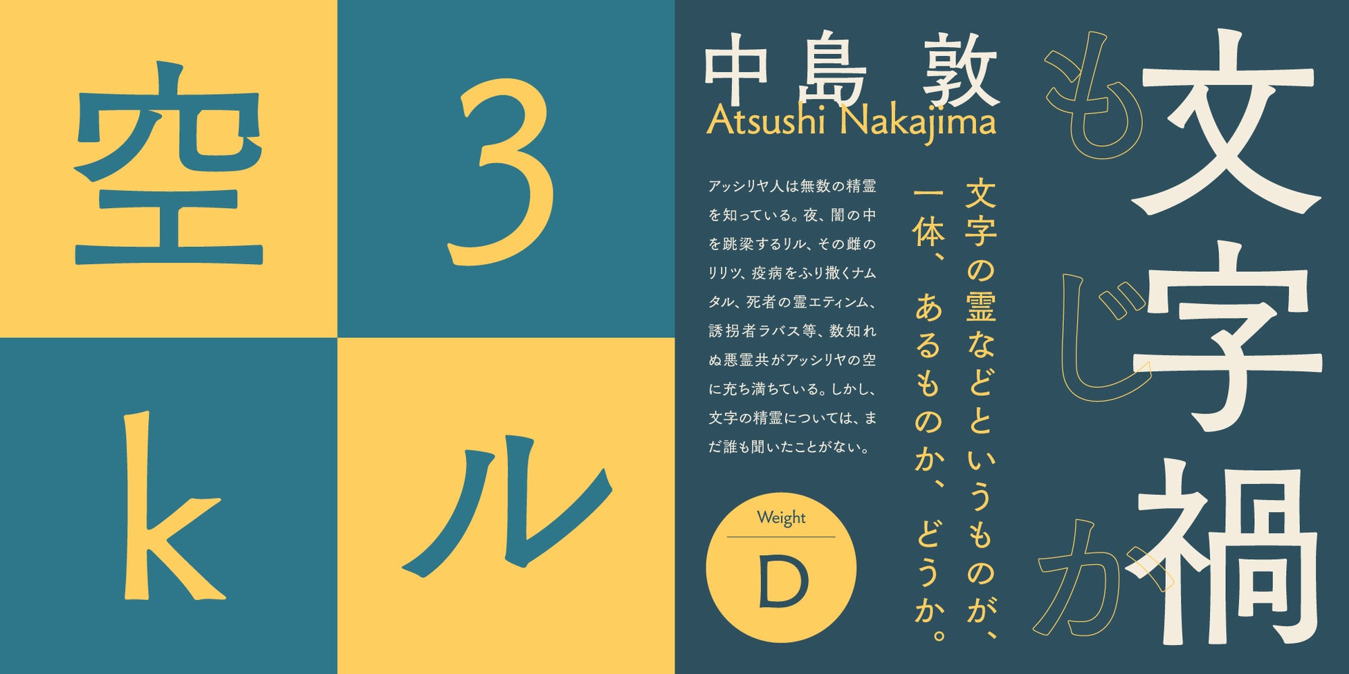 今回新たにに追加されるのは「R(レギュラー)/M(ミディアム)/D(デミボールド)/E(エクストラボールド)」の4ウエイト。全部で6ウエイトのファミリーとなりました。