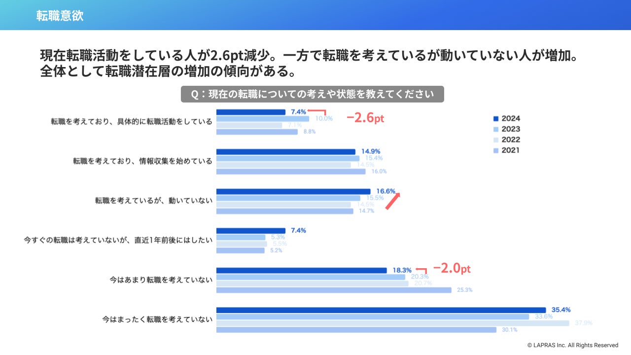 〜転職活動中のITエンジニアと副業率は低下、一方で転職希望のある転職潜在層は増加する傾向に〜
