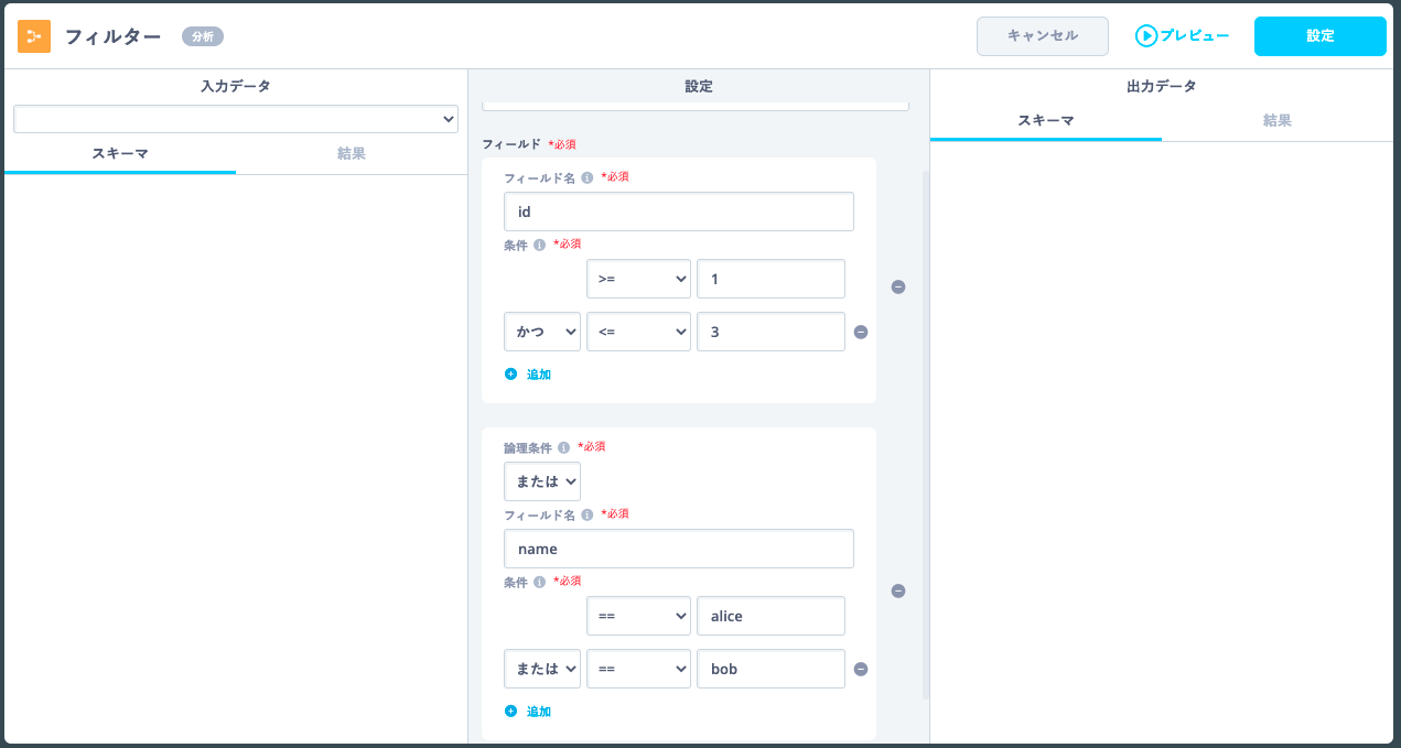 - ひとつのフィールドに対して複数フィルター条件を適用できます。