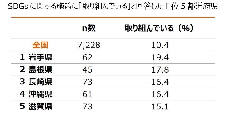 また、「取り組んでいる」の回答率を都道府県別に見ると、岩手県が19.4%で最も高く、次いで島根県(17.8%)、長崎県(16.4%)、沖縄県(16.4%)でした。