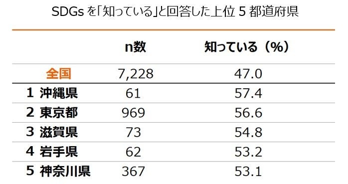 また、「知っている」の回答率を都道府県別にみると、沖縄県が57.4%で最も高く、次いで東京都(56.6%)、滋賀県(54.8%)でした。