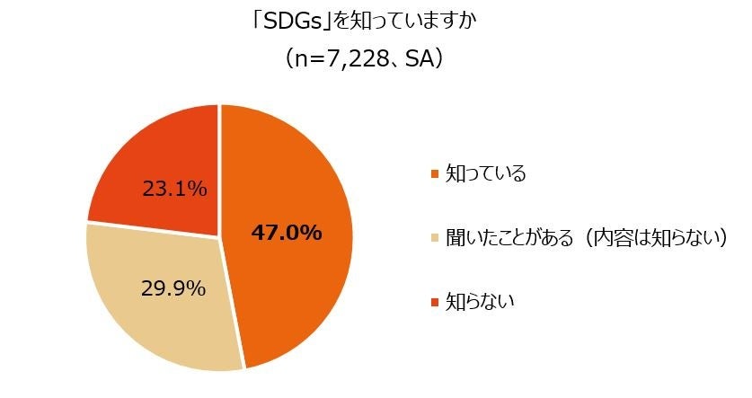 中小企業経営者7,228名に、SDGsについて知っているか聞いたところ、「知っている」と回答したのが47.0%で約半数でした。一方で、「知らない」と回答したのは23.1%でした。