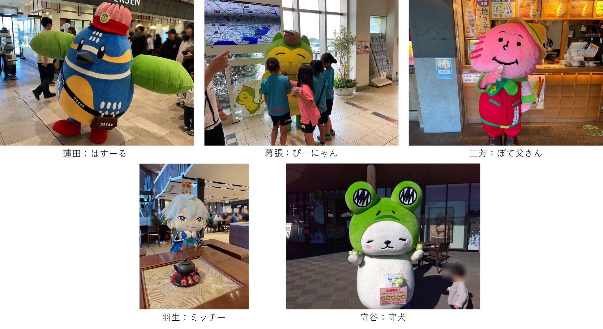 Pasar各施設のキャラクター5体(羽生:ミッチー、三芳:ぽて父さん、幕張:ぴーにゃん、守谷:守犬、蓮田:はすーるが一堂に集結。キャラクター達が「じゃんけん大会」・「撮影会」を実施します。