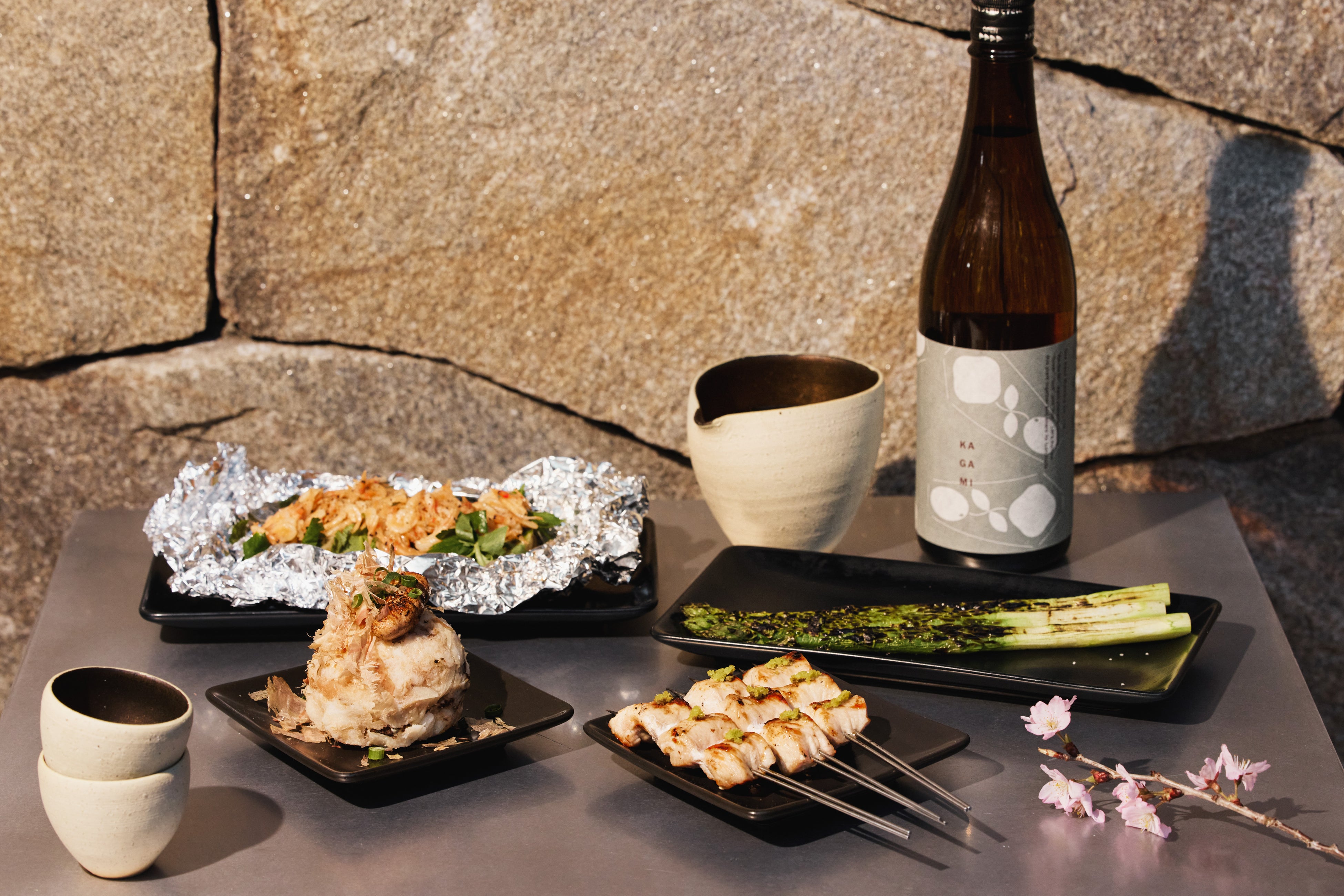 串焼屋TRUNK(KUSHI)では、炭火焼ならではの新メニューが登場します。「焼き長芋と焼き明太子のポテトサラダ」は、香ばしく焼いた長芋と明太子を合わせた酒肴に最適な一品。「たっぷり桜エビのじゃがバター」は、新じゃが芋に桜エビを重ねた季節感あふれる仕立てです。「アスパラガス」や「鶏むねわさび」は、炭火焼で素材の持ち味を引き出しました。締めには、焼きおにぎりにTRUNK(KUSHI)特製の鶏スープを合わせた「焼きおにぎりの出汁茶漬け」がお勧めです。