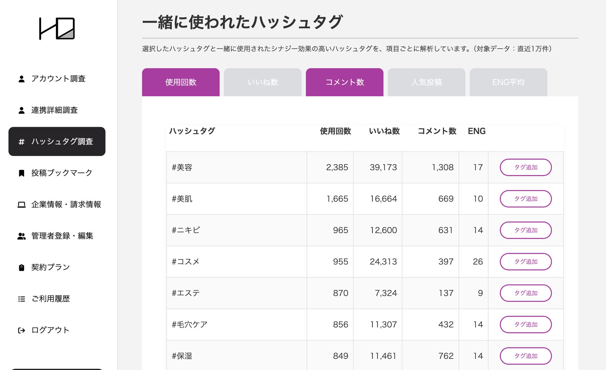 今回活用した弊社サービス instagram分析サービス「hashout」