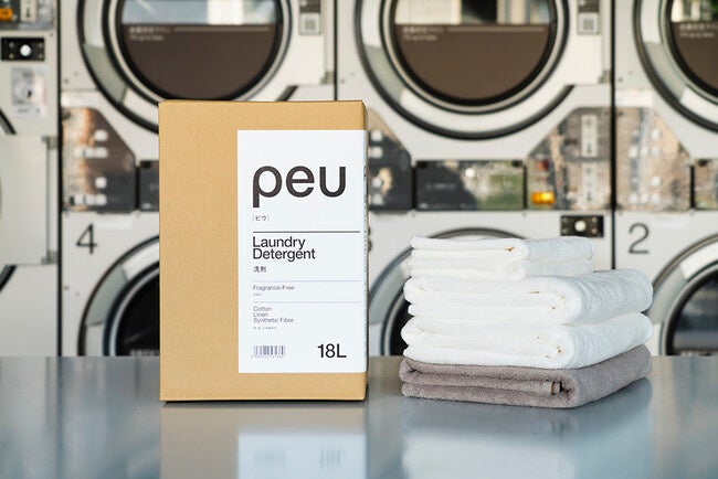 「衣類に、肌に、環境に優しい洗剤」 を目指して2019年にBaluko Laundry Placeオリジナル洗剤・柔軟剤「peu(ピウ)」が誕生しました。peuの特徴は、「洗うこと」に目的を絞り、不要な成分を繊維に残さないこと。素材本来の肌触りに近い洗い上がりを実現します。2023年1月より、この特徴をそのままに、さらに汚れ落ち、洗い上がりの質感を高め、環境負荷を低減することを目的に、すべての成分を見直した新しい「peu」の使用を開始しました。