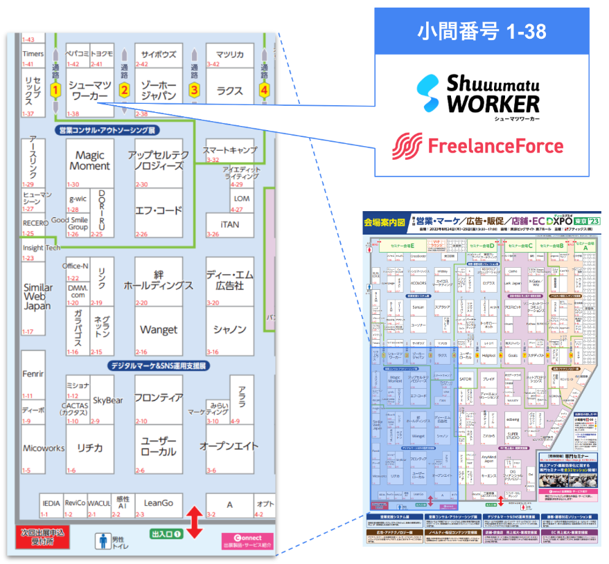 シューマツワーカーとフリーランスフォース「営業・マーケ/広告・販促/店舗・EC DXPO 東京 '23 」へ本日より出展