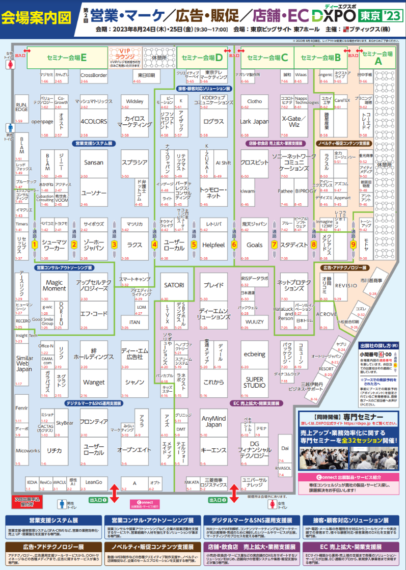 同時開催:営業支援システム展、営業コンサル・アウトソーシング展、接客・顧客対応ソリューション展、デジタルマーケ&SNS運用支援展、広告・アドテクノロジー展、ノベルティ・販促コンテンツ支援展、店舗・飲食店 売上拡大・業務支援展、EC 売上拡大・開業支援展