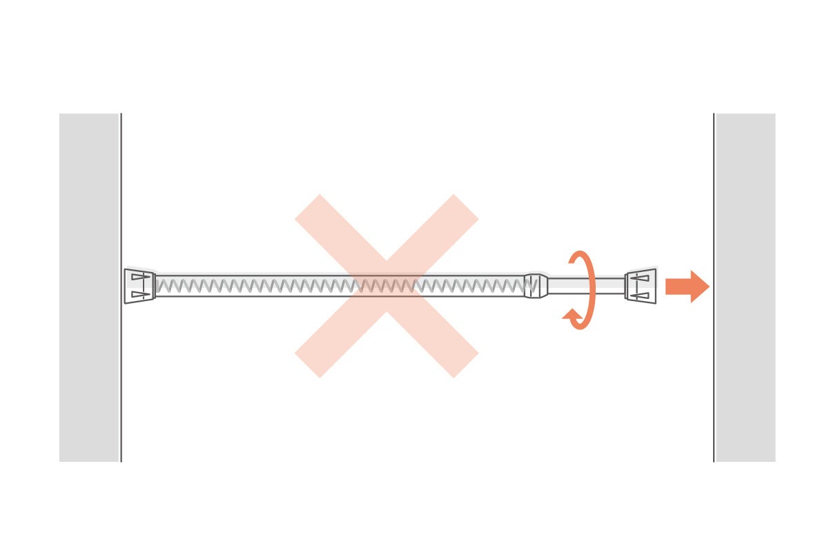 突っ張り棒を設置する際、壁の間で「くるくると回して」長さを伸ばし、そのまま固定していませんか? 実はこれ、従来のバネ式突っ張り棒においては間違った使い方です。