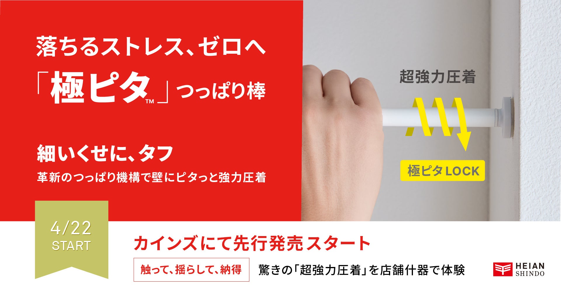 50年間の「お願い」を取り下げます。「回さないで」と言い続けたメーカーの反省から生まれた"回すから落ちにくい"次世代突っ張り棒「極ピタ」、4月22日からカインズにて独占先行販売を開始