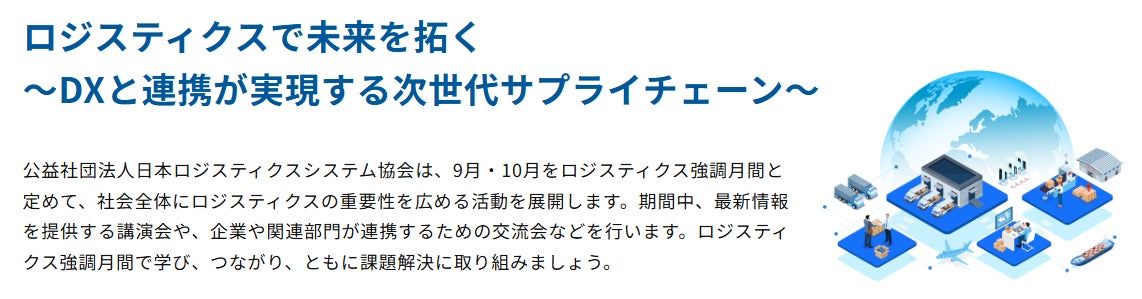 公益社団法人日本ロジスティクスシステム協会(JILS)では創立以来、毎年「ロジスティクス強調月間」を定め、ロジスティクスの意義の普及推進を行っている。2025年度は、9月および10月を実施期間と定め、東京・愛知・大阪・福岡にて様々なイベントを展開する。