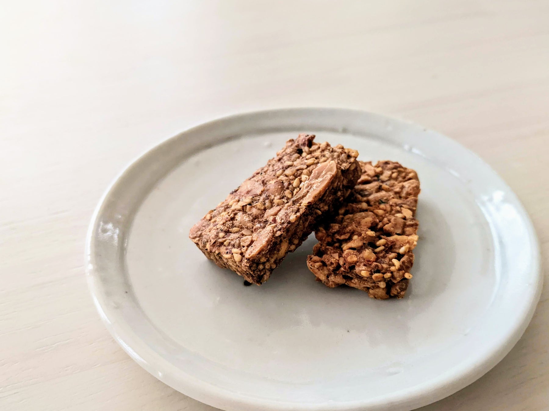 通常食材を固めるためには、砂糖や水飴、小麦粉、チョコレートなどを「結着材(バインダー)」として用いる必要がありますが、本製品は「こんにゃく」のみで固めているため非常にヘルシーなおつまみとして焼き上げることができました。