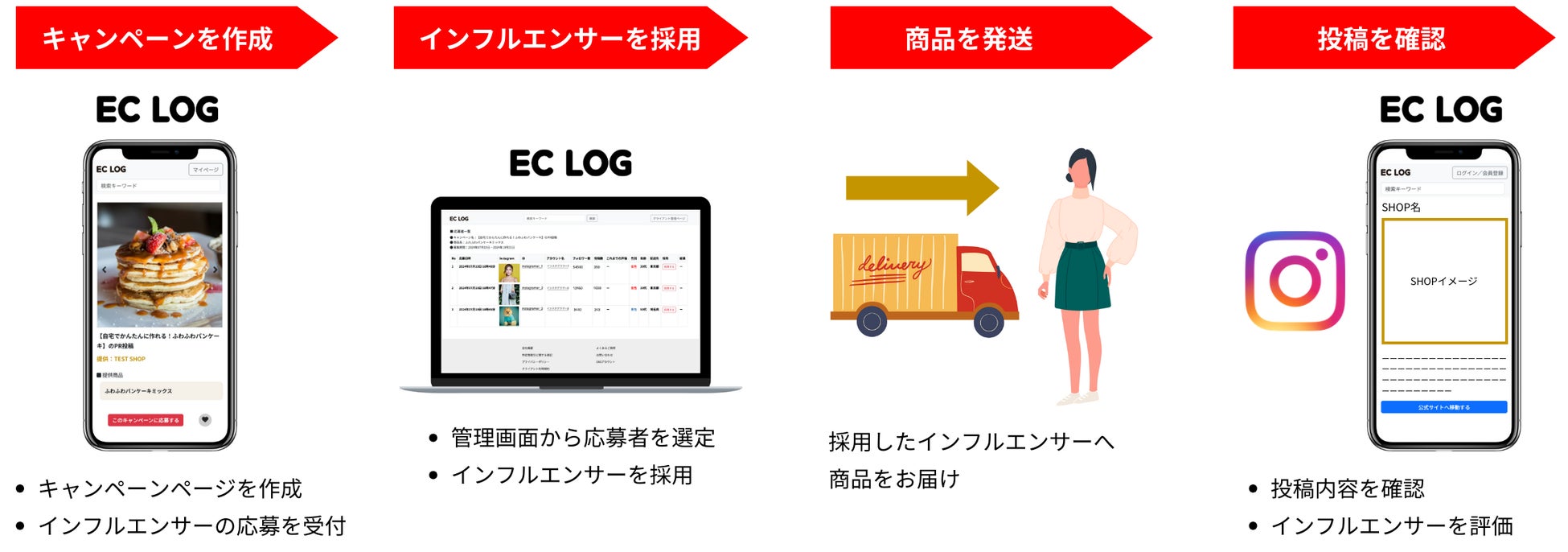 ※ ECサイトが実施するキャンペーンには、登録インフルエンサーのみが応募できるシステムです。
