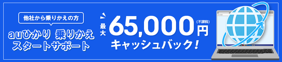 さらに、auひかり 乗りかえスタートサポート上乗せキャッシュバックでキャッシュバックが最大25,000円増額!