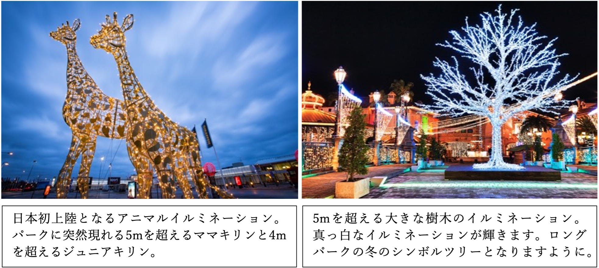 当施設の園内やビーチ沿いに、日本初上陸となるアニマルのイルミネーションや、カラフルなライトアップ、SENNAN LONG PARKオリジナルのイルミネーションオブジェクトなど、“ここでしか見られない”を詰め込んだ光の公園をつくります。