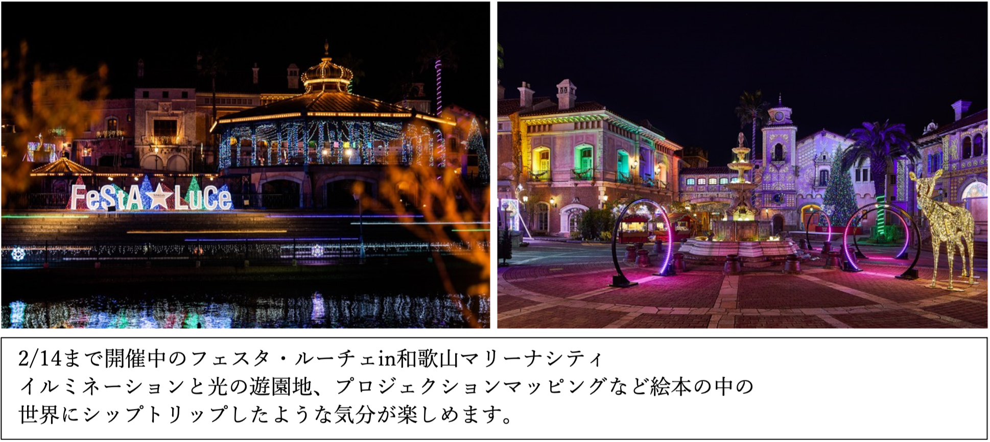 イタリア語で「フェスタ」はフェスティバル、「ルーチェ」は光。「光のフェスティバル」その空間、 雰囲気を楽しんでもらいたいとの思いです。 「フェスタ・ルーチェ」は、屋外照明メーカー株式会社タカショーデジテック、LEDデジタルライテ ィングを得意とする照明メーカーカラーキネティクス・ジャパン株式会社の2社がプロデュースするイルミネーションと光のフェスティバルです。2017年、和歌山での開催をスタートに全国で開催されています。