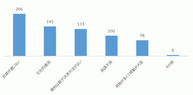 訪日時の懸念点についてのアンケート(複数選択)は、やはり「言葉が通じない」が最も多く、206件でした。次に「文化的衝突」と回答した人が145件、「便利な決済方法がない」が133件でした。『決済方法』に関しては、昨年秋のアンケート(全回答数は998件)でも、「積極的にWechat Payやアリペイ等の電子決済を使いたい」が43.3%、「電子決済、クレジットカード、現金の順番に使用」が240件(24.0%)と大多数で、「積極的に現金を使いたい」は139件(13.9%)と、少数にとどまっているなど、キャッシュレス化が中国人観光客の新たなニーズと言えるでしょう。