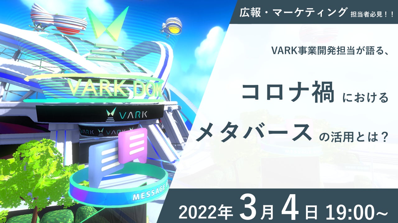 エンターテインメント特化型メタバース「VARK」を運営する株式会社VARK(本社:東京都豊島区 代表取締役:加藤卓也)は、メタバースに関するオンラインセミナーを3月4日(金)に開催します。