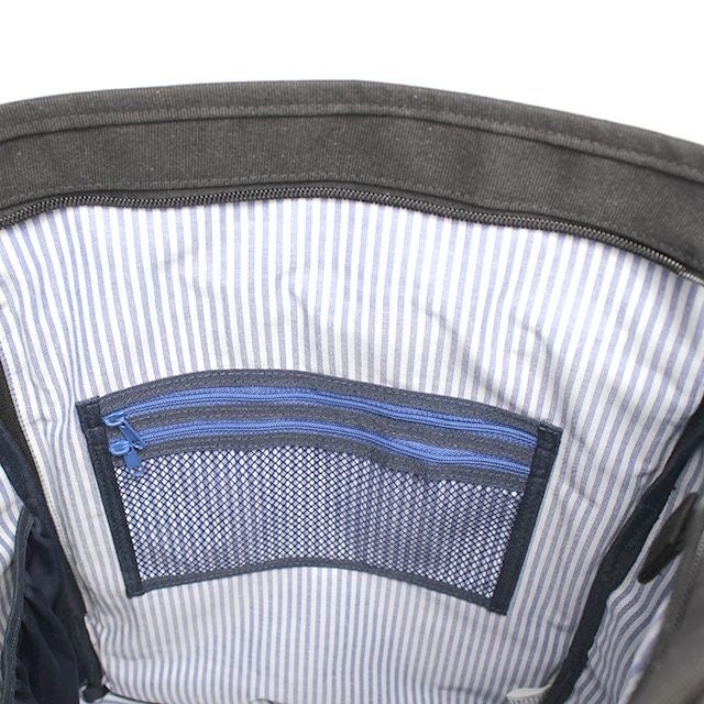 ファスナー付きのメッシュポケットを完備。中身が一目で確認できるメッシュ仕様は、バラつきがちな小物などを整理するのに最適です。