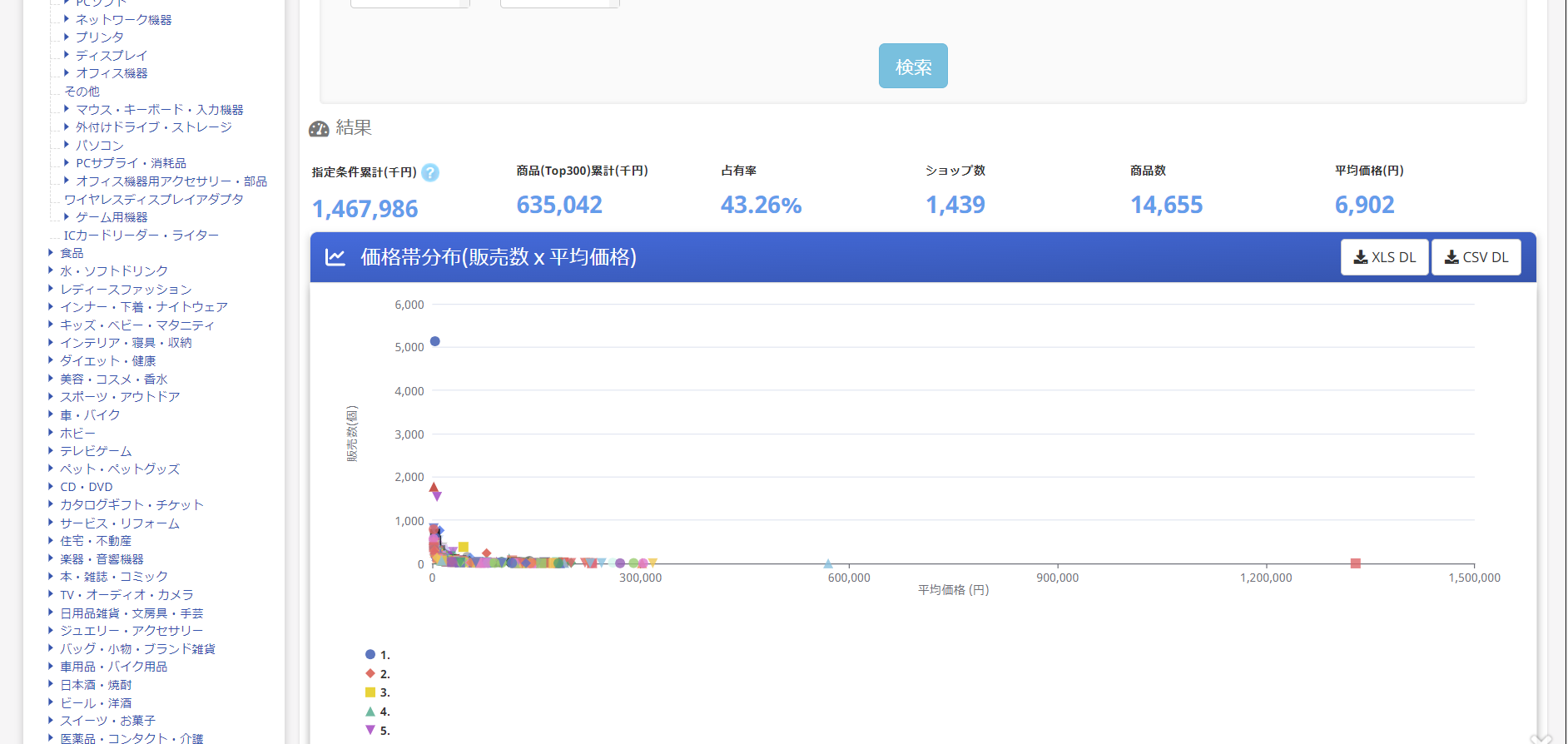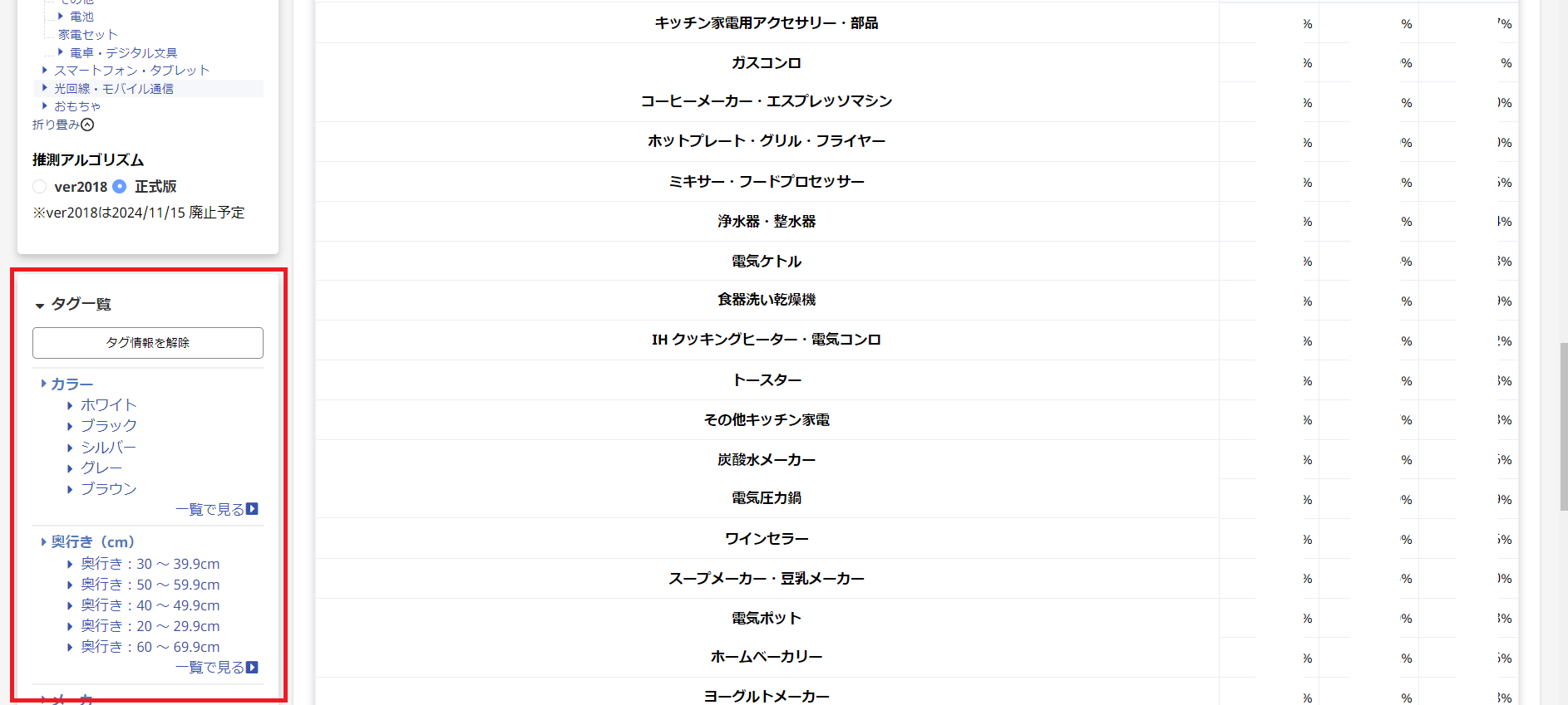 機能別の人気商品を確認。→新しく仕入れる商品スペックを決定