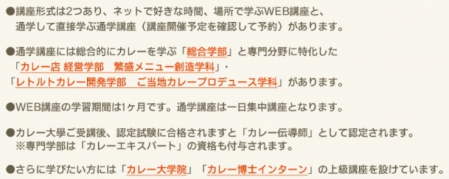 カレーを体系的かつ実践的に学ぶことができ、カレーを理解する必要不可欠な知識全般を習得します。単なる知識としてだけでなく、ビジネスや家庭で実用的に実践できる「生きた学問」として学ぶことを目指しています。