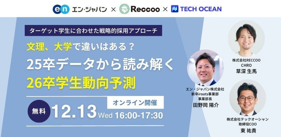 RECCOO×エン・ジャパン×テックオーシャン 特別コラボセミナー 「25卒データから読み解く26卒学生動向予測」を開催