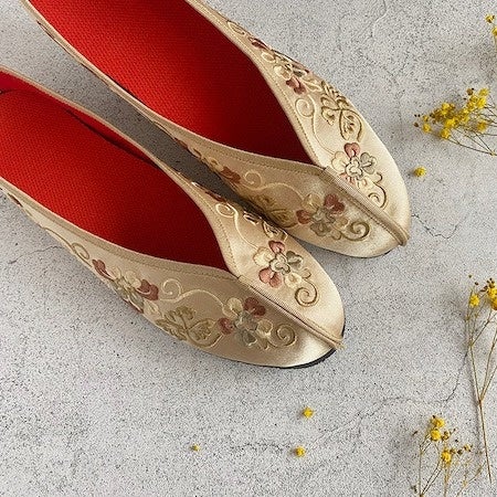 シックな色味に、シンプルなシルエットのチャイナシューズは履き心地の良い素材で、長時間歩いても疲れにくいのが魅力的。ルームシューズとして使っても気分が上がりそう。