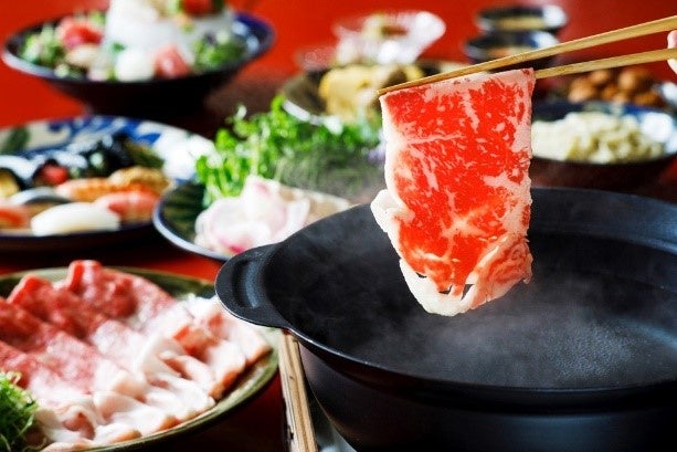 やんばる島豚あぐーや県産黒毛和牛が堪能できるしゃぶしゃぶ会席。アップグレードの選択肢として全国から取り寄せた銘柄牛もご用意しています。