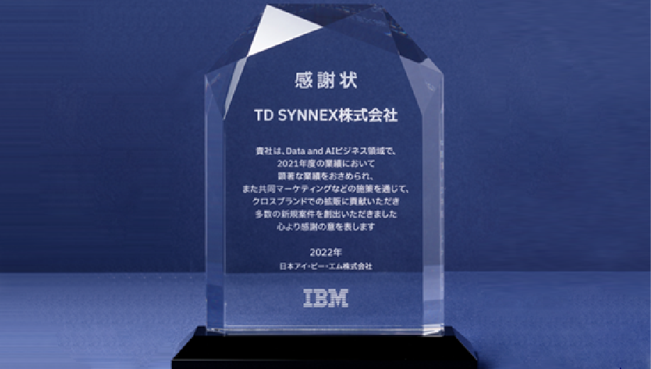 今回、TD SYNNEXは、「Data and AIビジネス」領域における2021年の『IBM SPSS』『IBM Cloud』実績を評価いただき、本賞を受賞した経緯です。