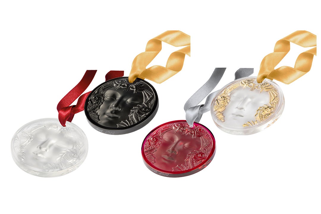 メゾンのアイコニックモチーフである《マスク ド ファム》は、1935年、ルネ・ラリックによって噴水を飾るために生み出されました。ミステリアスな⼥性の表情に⽔中の生物が寄り添う優雅な様は、透明感に溢れ幻想的な神話の世界へ誘います。その流麗な装飾美は、クリスタルの煌きと引き込まれるような滑らかな質感によって洗練を極め、ホリデーシーズンを華やかに彩ります。新たなカラー「クリア/ゴールド」は、この神秘的なモチーフの魅⼒をより⼀層シックに引き⽴てます。