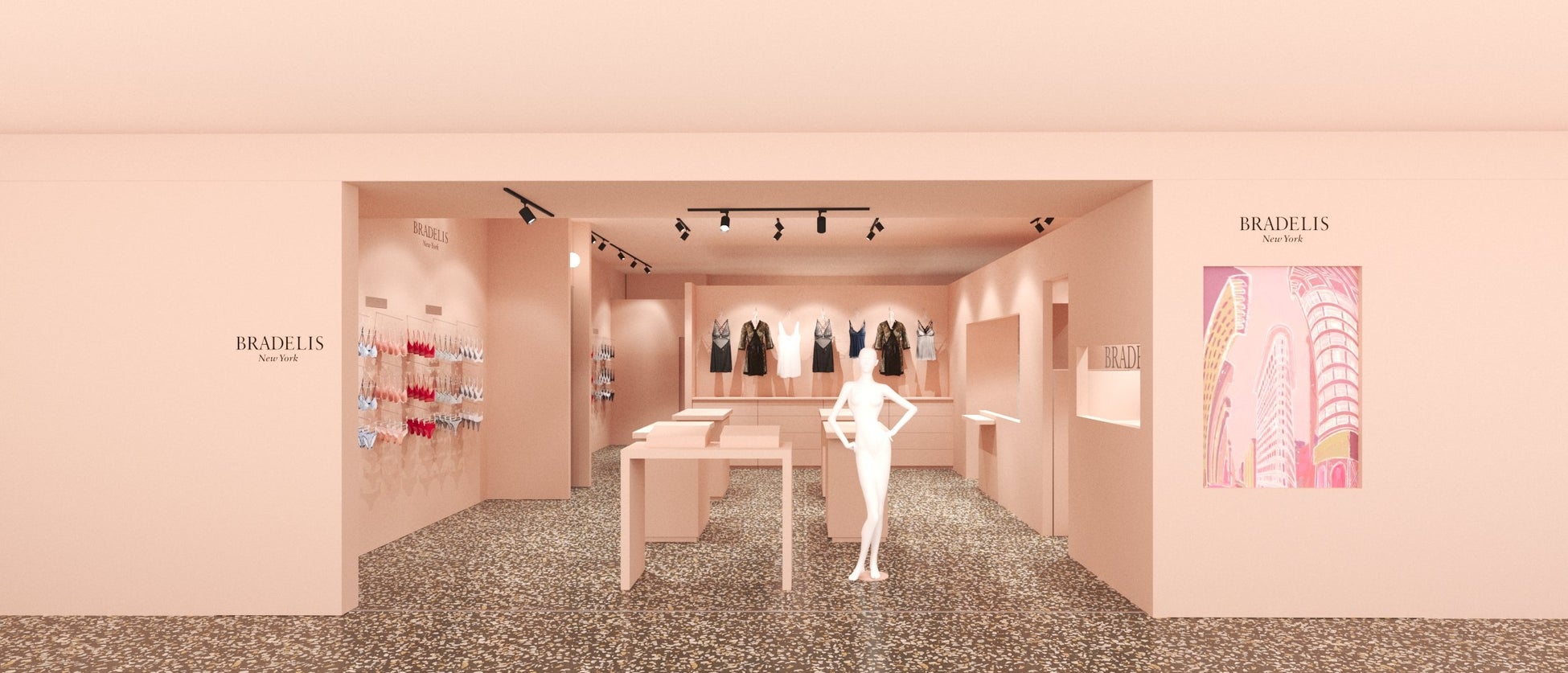 BRADELIS New York新宿マルイ店の主要顧客層である20~30代は、自分の身体と向き合い、ライフステージの変化から悩みも深くなる年代です。私たちの商品やフィッティングサービスを通して悩みを解消し、理想をかなえていただきたいという想いから、お客様のお悩みを丸ごと受け入れるような包容力のあるピンク色を基調にした内装にリニューアルいたします。また、一点一点の商品をゆっくり見ていただけるよう、既存店舗よりも商品数を絞って陳列いたします。