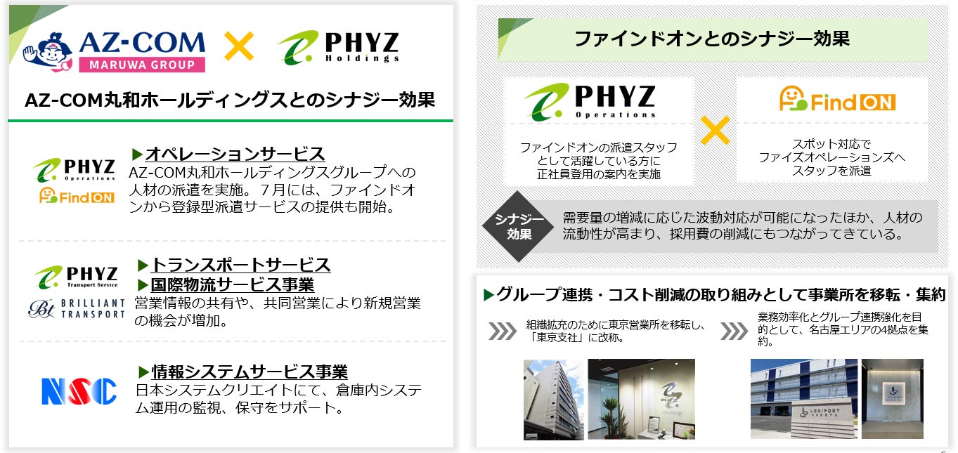 ・AZ-COM丸和ホールディングスやファイズグループ内での主なシナジーや取り組みについて