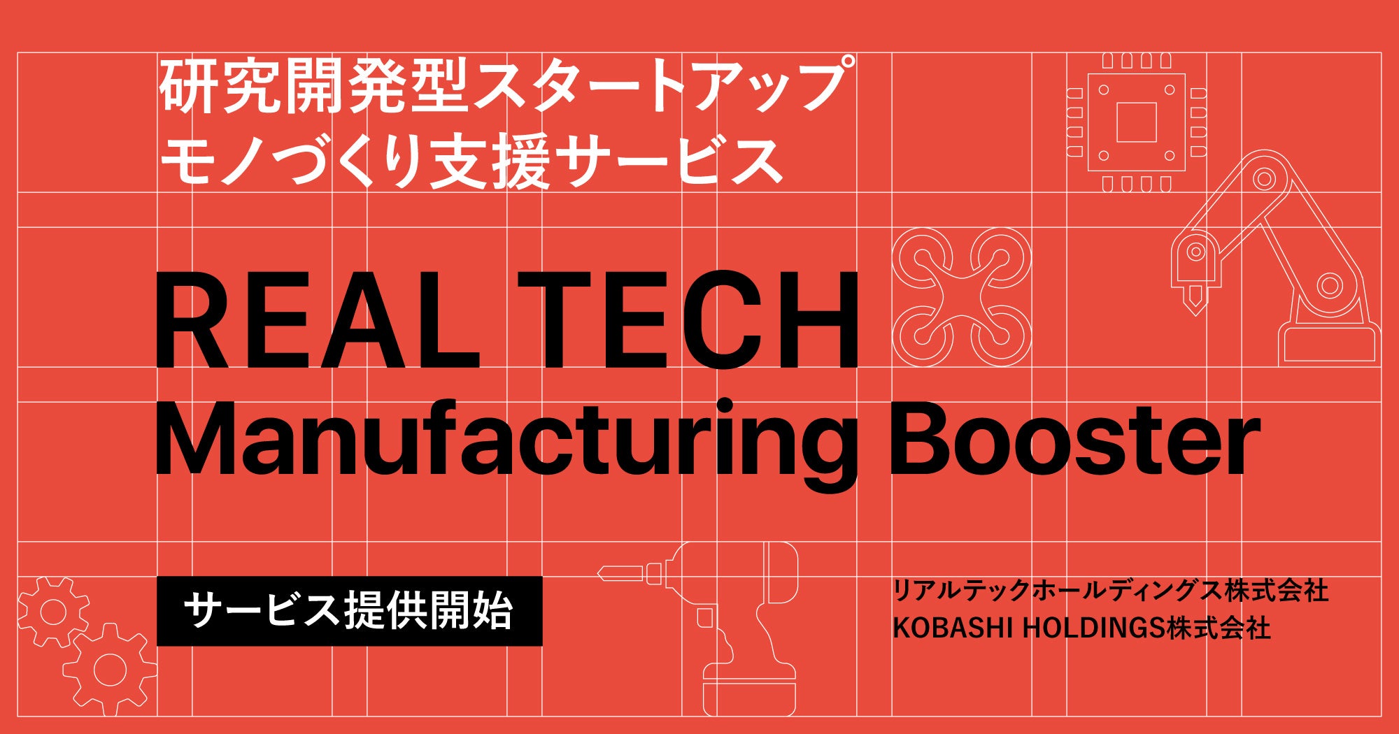 リアルテックホールディングス株式会社(所在地:東京都墨田区、代表:丸幸弘、永田 暁彦、以下「当社」)は、2021年8月に開始したリアルテックファンド投資先へのモノづくり支援サービス「Manufacturing Booster」を事業化し、すべてのスタートアップに提供を開始することをお知らせいたします。