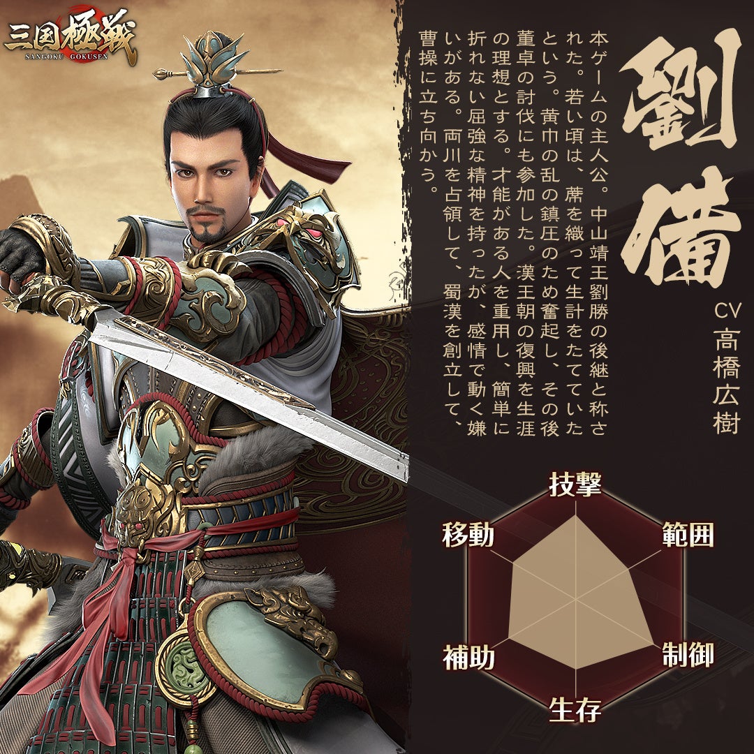 『三国極戦』の物語は、漢王朝の没落からはじまり、主に劉備の視点から群雄割拠の三国時代を描いております。プレイヤーは三国武将の一人として黄巾の乱や赤壁の戦いなど数々の名戦役のストーリーを体験できます。本作の緻密なストーリー展開をぜひお楽しみください。