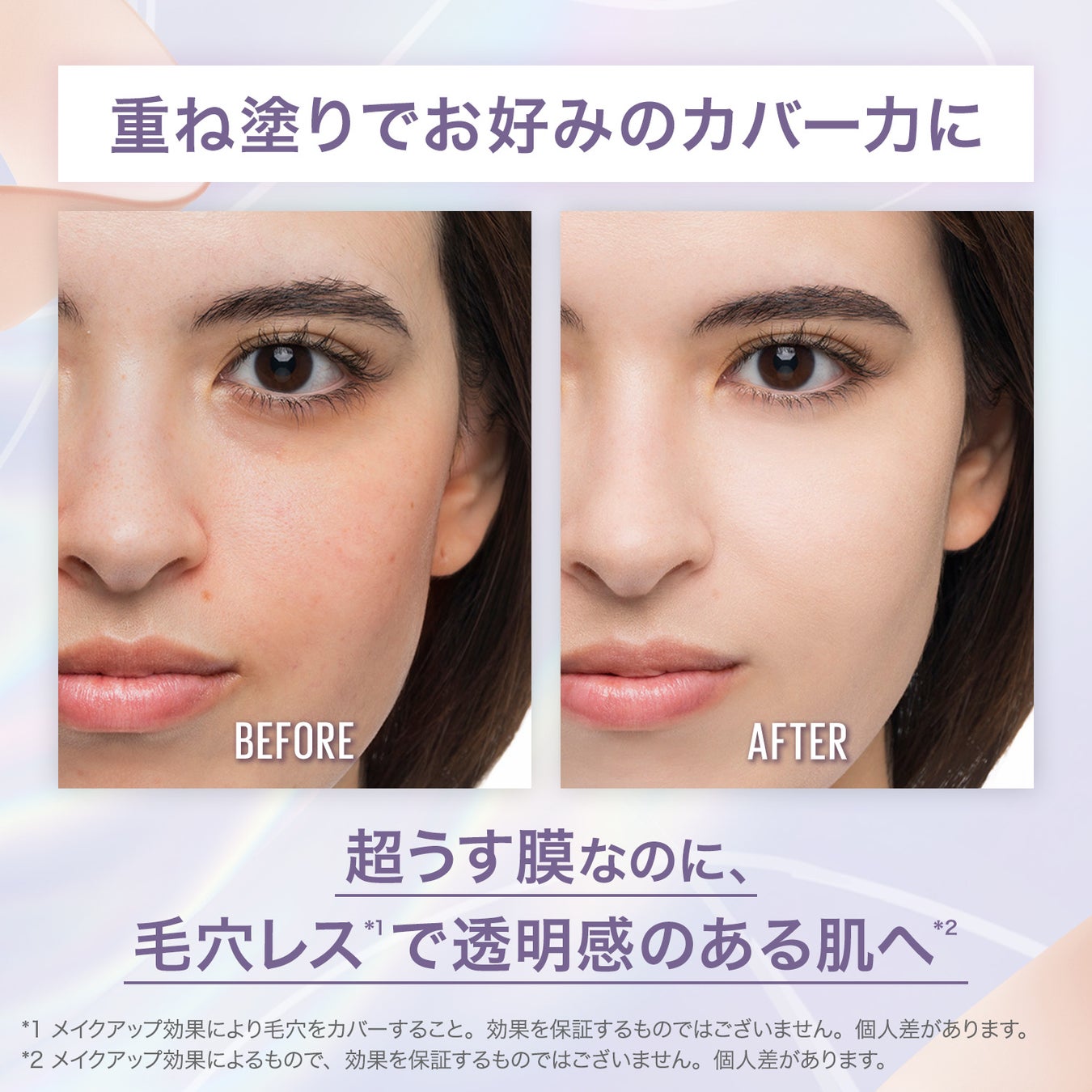 超うす膜なのに毛穴・くすみもぼかし*⁵ 、透けるような肌*⁵へ。