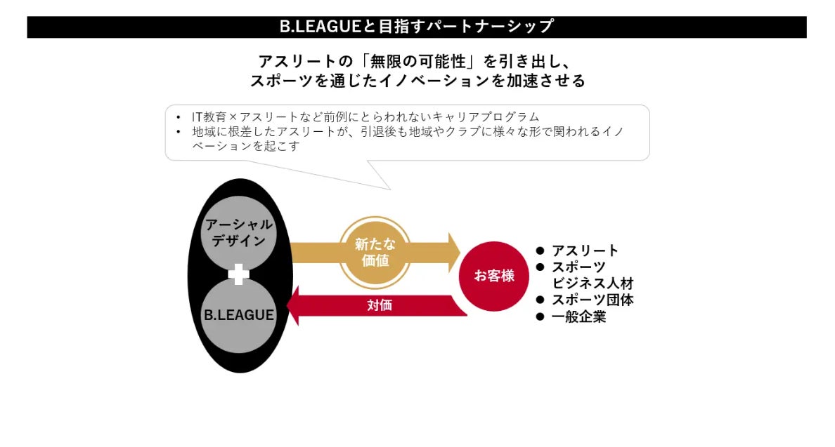 B.LEAGUEが保有するリソースと当社が運営する部活DX支援プラットフォーム「AthleteBox」を掛け合わせ、部活動地域移行の推進に向けた共創活動を開始いたします。特定のB.LEAGUEクラブとのPOCの実行及び検証を通じて、地域の子供たちの主体的な技術向上をはじめ、両社の強みを活かした提携によって、今後、さらなる地域移行の推進に貢献していきます。