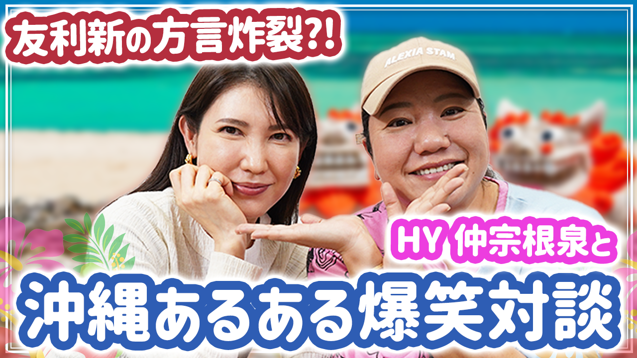 本動画では、沖縄出身同士のコラボ企画として、HYの仲宗根泉さんをお招きして、『沖縄あるある』を披露。宮古島出身の友利さん、沖縄本島出身の仲宗根さん、それぞれの地域ごとの方言や、文化、魅力や違いなどを紹介する内容でお届けしております。
