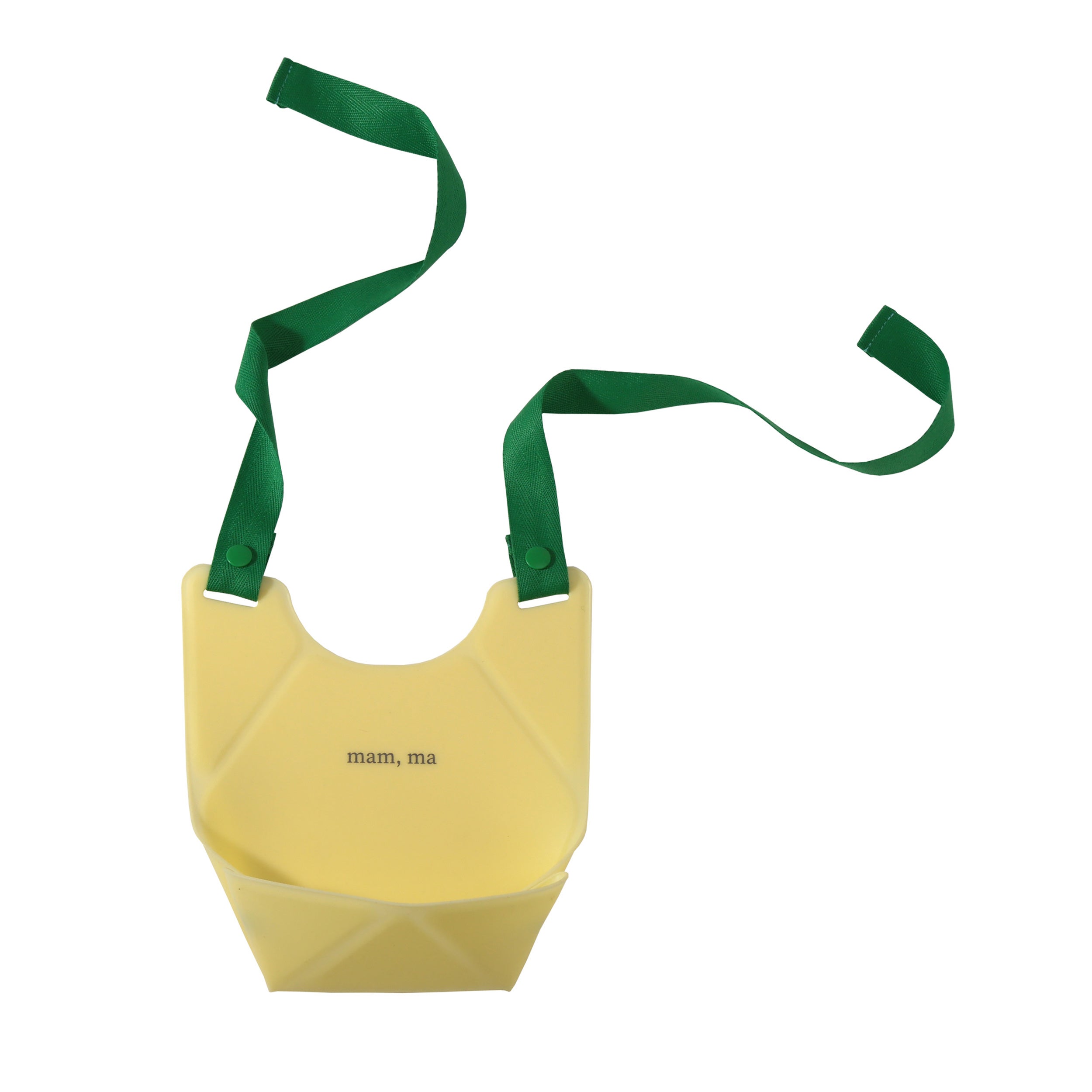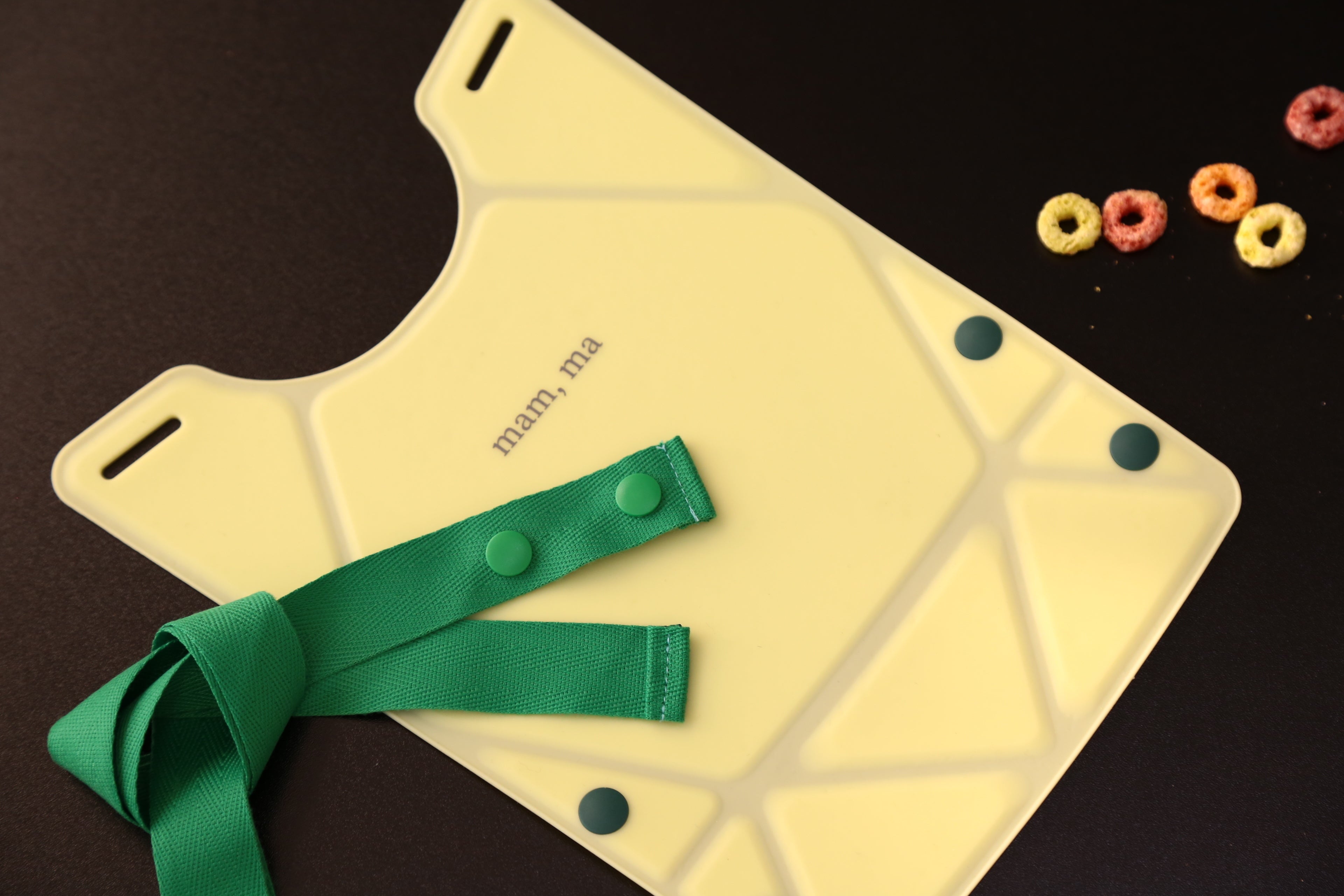 折り紙を折るようにボタンを留めてビブにしたり、ボタンを外してプレート代わりにしたりと、2つの使い方が可能です。