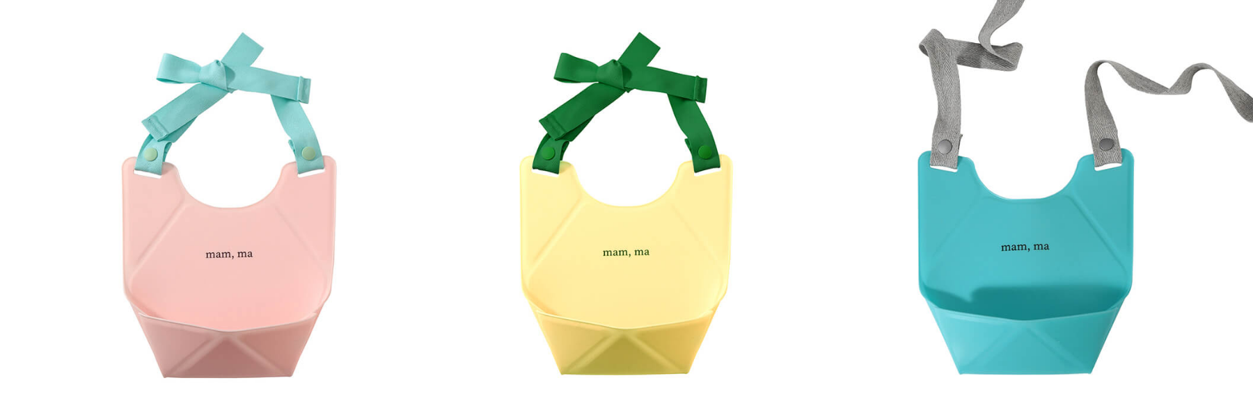 一般的なお食事シリコーンビブは、食べこぼしをキャッチするポケット付きで、首回りまで一体化した立体的なもの。そんな当たり前に新しい風を吹き込むのが「ORIORIシリコーンビブ」です。他にはないデザイン・仕様といつもの快適な使い心地、両方のニーズに応えます。