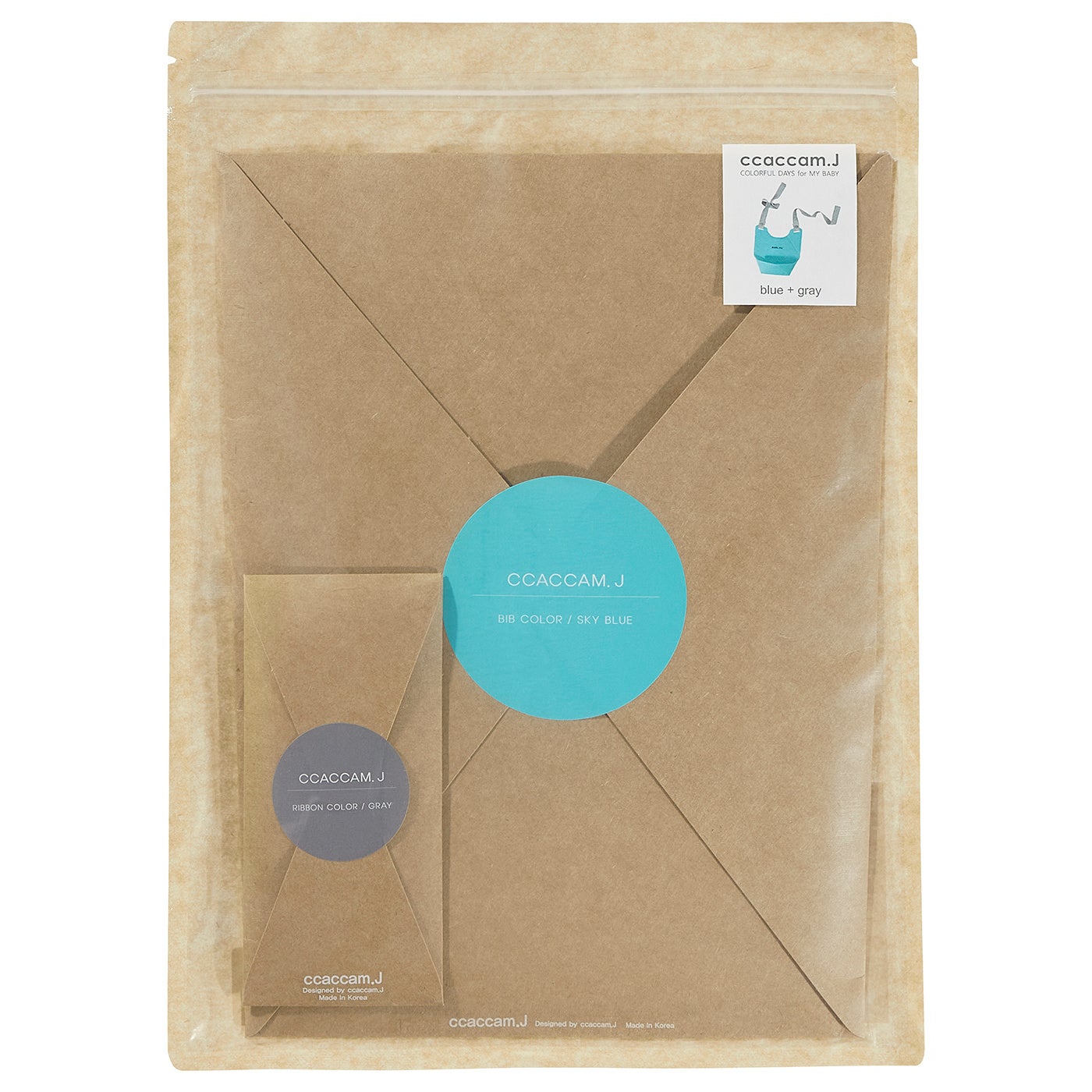 また、ギフトに適したパッケージも魅力です。クラフト紙の封筒に、ビブと紐のカラーにリンクしたシールがアクセント。手紙を開けるときのようなワクワクを感じていただけます。