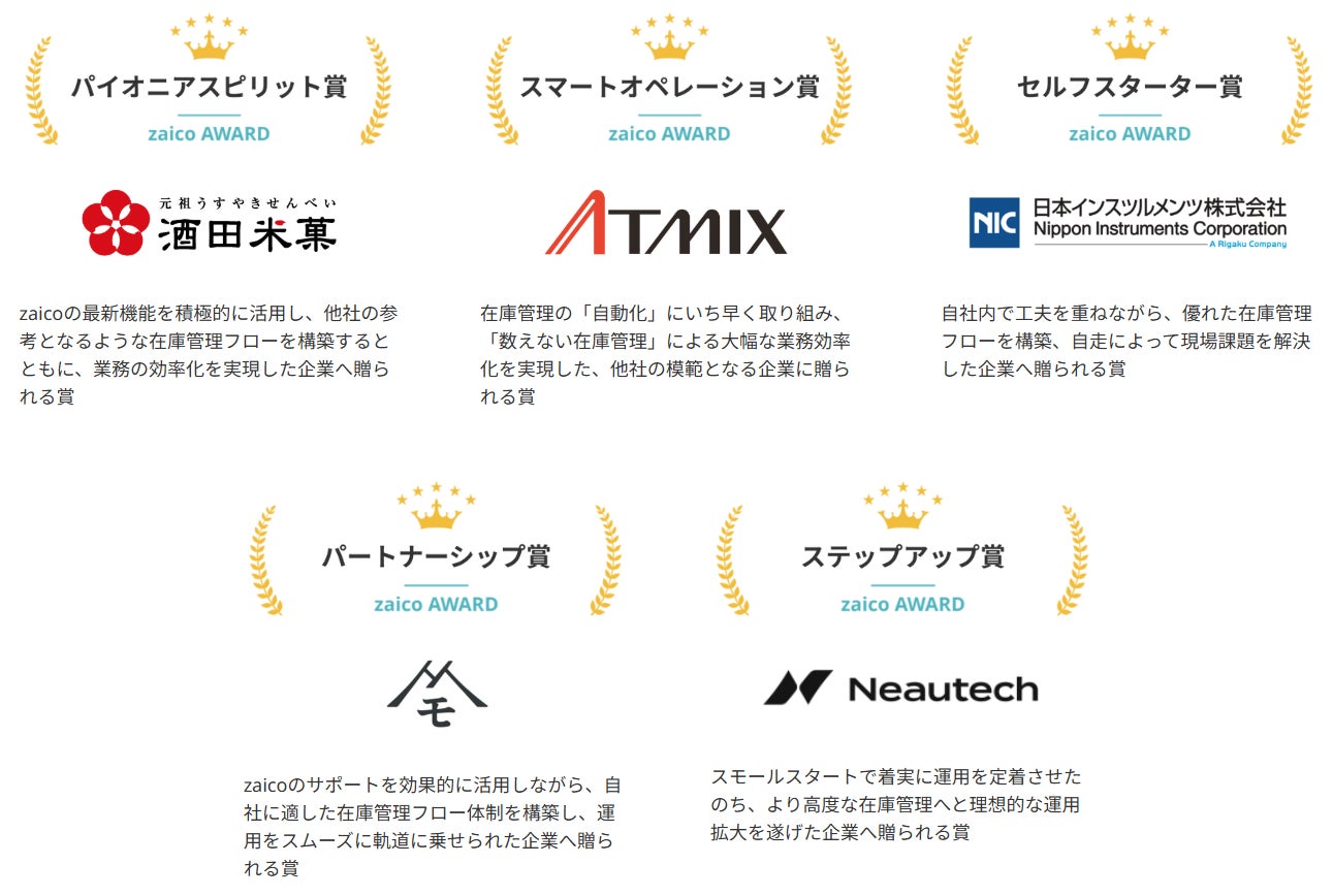 日頃より「zaico」をご利用いただいているお客様への感謝と、業務効率化に真摯に向き合う姿勢への敬意を込めて、その取り組みを称え、表彰させていただいております。