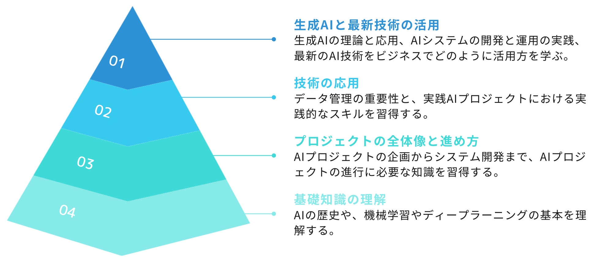 ■ ビジネスシーンでAI技術を活用するためのスキルを習得する