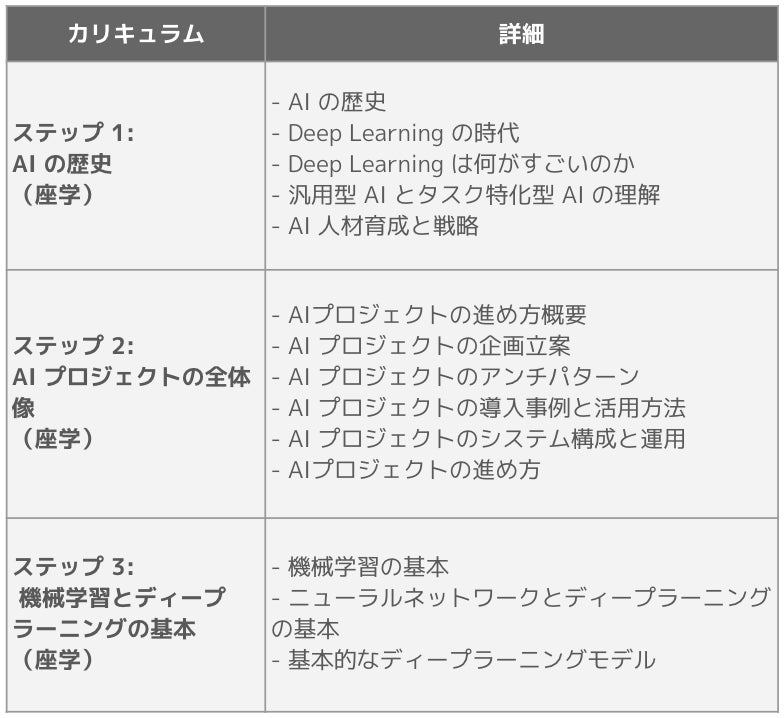 ■ AIプロジェクトの全体像を理解し、基礎的なスキルを身につける